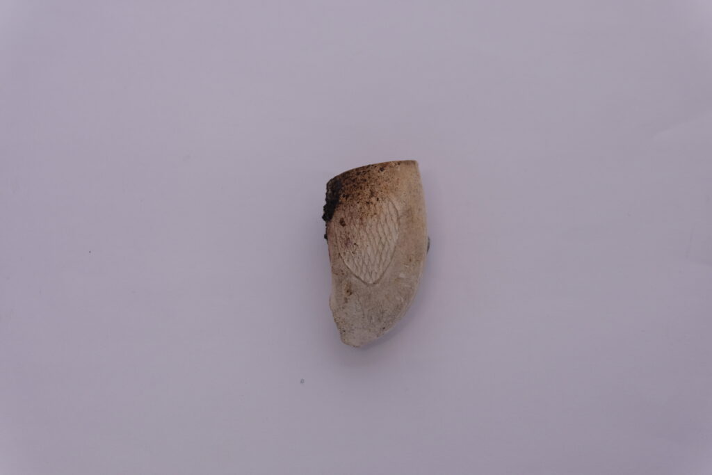 This was judged based on size, shape, and the flat based spur which was used for resting the pipe upright on a surface. We can see a circular stamp on the base of the spur, but unfortunately not enough detail has survived to make out a design or makers’ name.