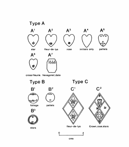 Caption: Tyneside Designs (Edwards, L. (1988). Seventeenth and Eighteenth Century Tyneside Tobacco Pipe Makers and Tobacconists. In Davie, P. (Eds.). The Archaeology of the Tabacco Pipe. BAR British Series (192), pp. 8-13.