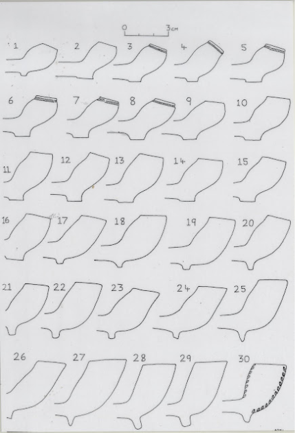 Caption: A chart of clay pipe types used for comparison with our own collection.