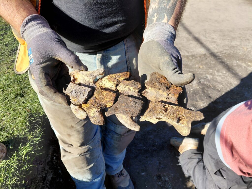 Image: Butchered vertebrae recovered from the mysterious feature in Trench 1.